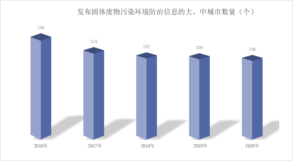 2、固体废弃物信息化统计工作已经初见成效,近年来200个左右的大、中城市固体废物处置公报越来越准确地反应出我国固废污染防治以及固体废弃物处理处置工作的进程。