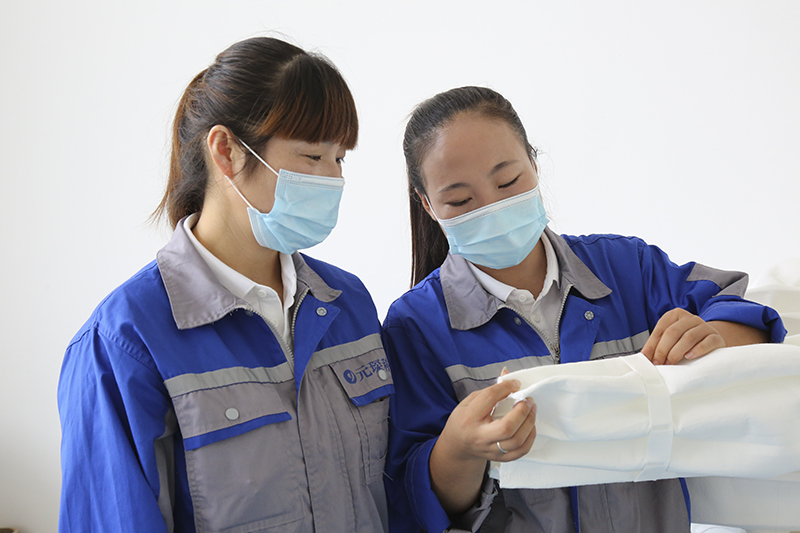 2020年3月份,滤袋车间新增了一条褶皱滤袋生产线。调试过程中,有人说褶皱滤袋不好做,不愿意去学习。这时,车间主任来到李婷婷旁边说:“你去,跟着师傅学”。沉默片刻,李婷婷坚定的回答说“好”!