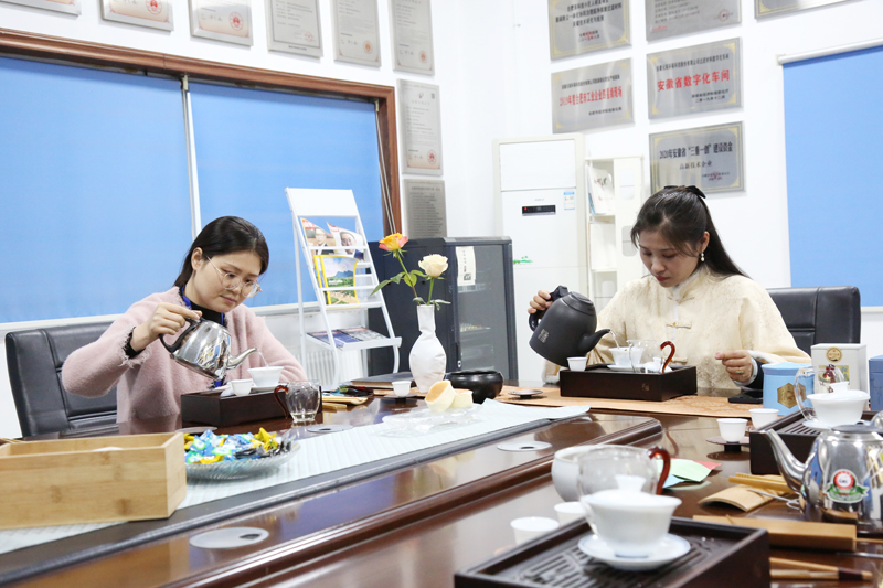 随后的实操环节,在茶艺师的示范下,参训员工纷纷温杯洁具、赏茶投茶、润茶、泡茶,用心体验着茶道乐趣,感受着茶艺的无穷魅力。