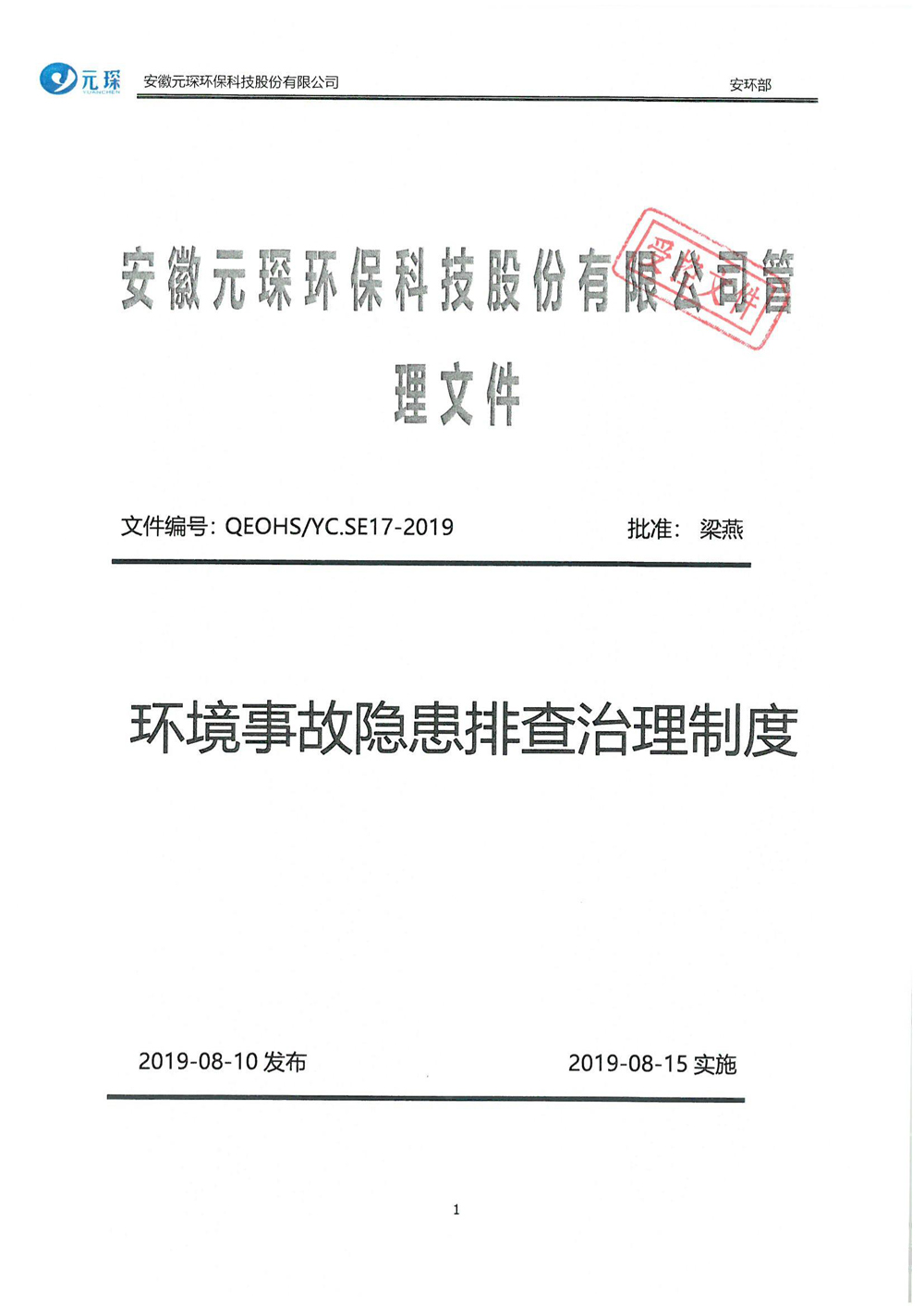 安徽678体育环保科技股份有限公司环境事故隐患排查治理制度