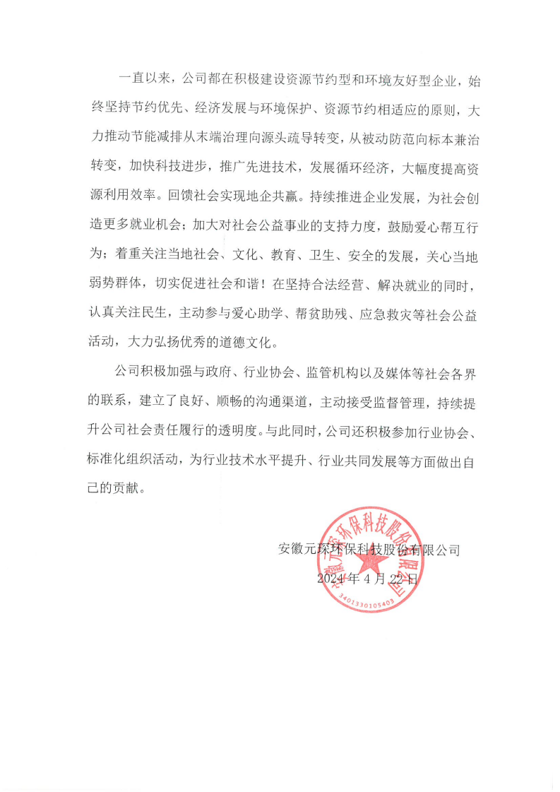 安徽678体育环保科技股份有限公司2023年度 社会责任报告